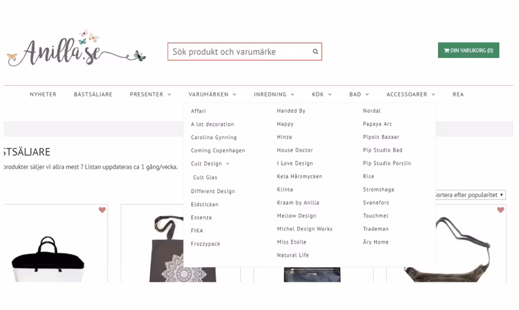 Har man många kategorier och produkter kan menyn bli för lång för att få plats ens på en stor skärm. Genom att sprida menypunkterna över flera kolumner blir menyn åter överskådlig.